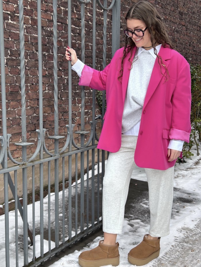 Blazer de la marque Imperial. Le mannequin mesure 1M59.