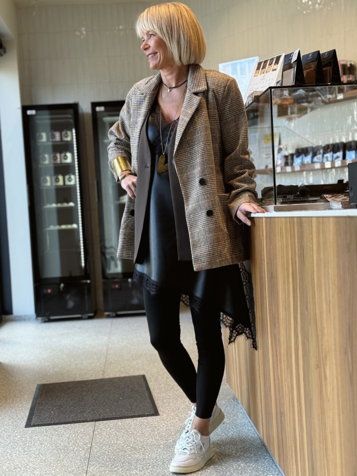 Blazer taille unique (convient du 36 au 42). Le mannequin mesure 1M69.