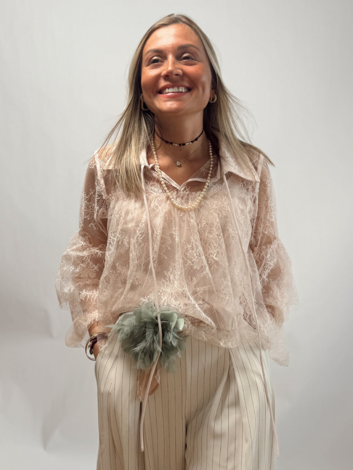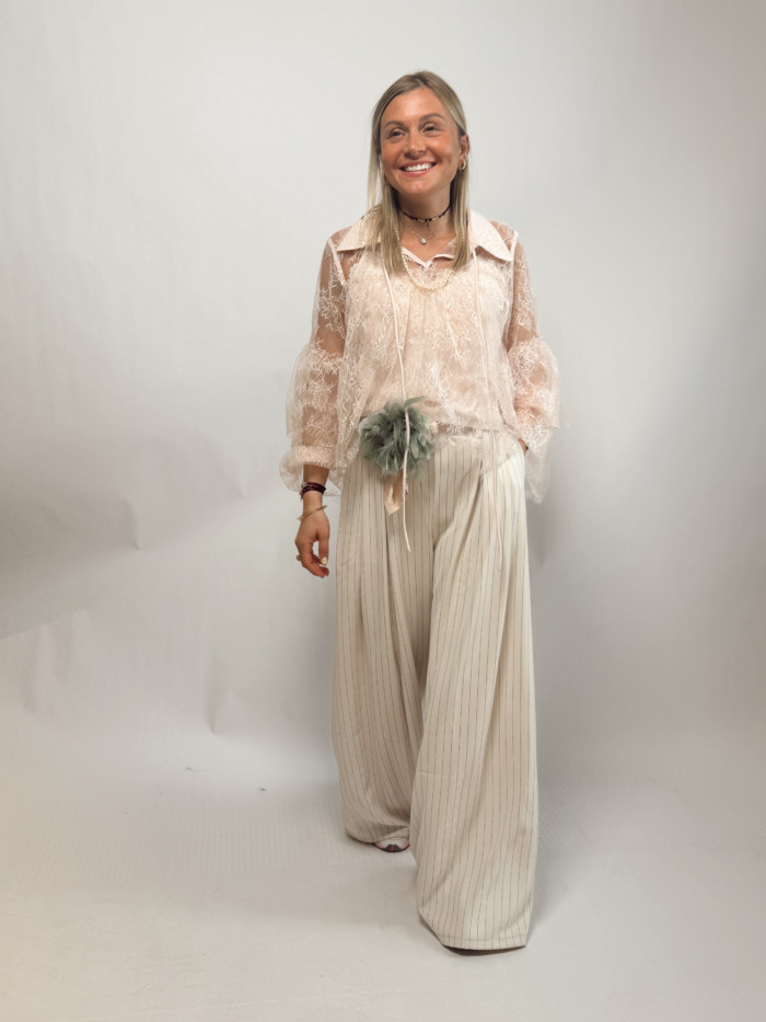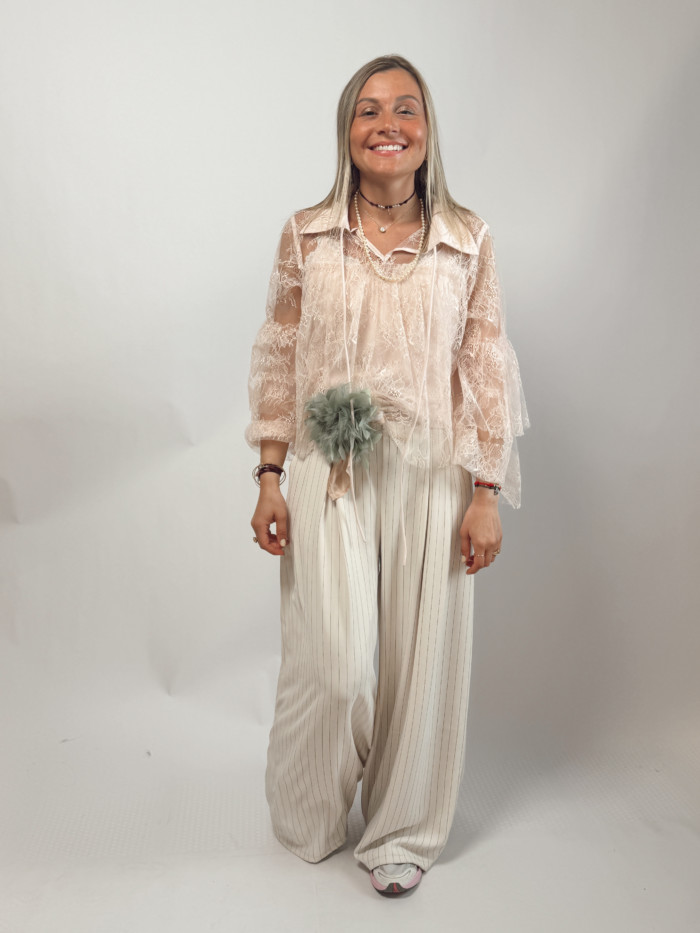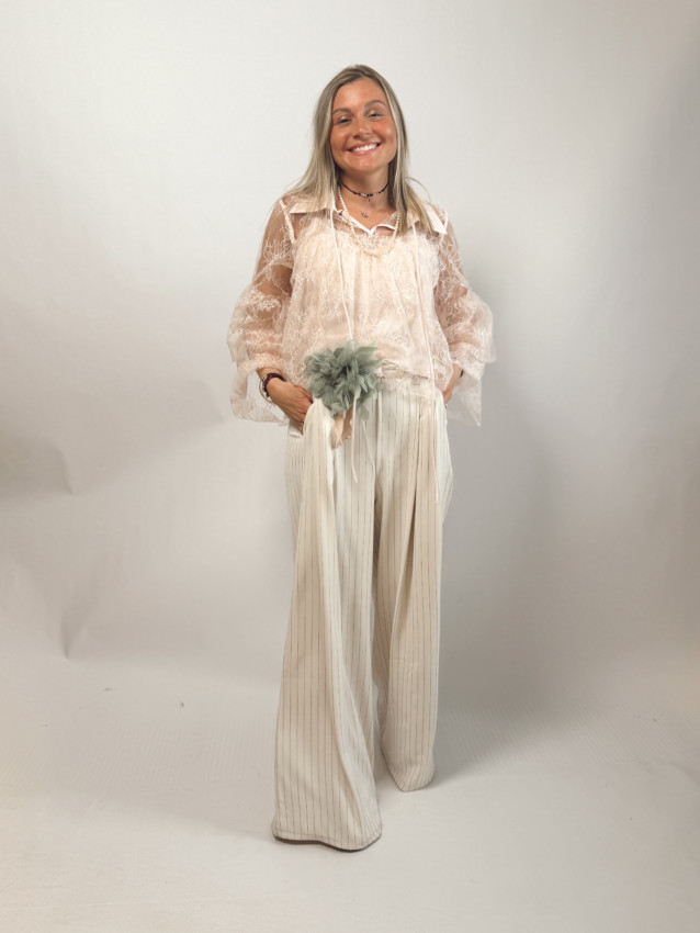 Blouse taille S/M et M/L. Léa porte la taille M/L.