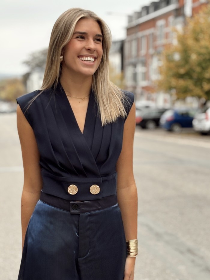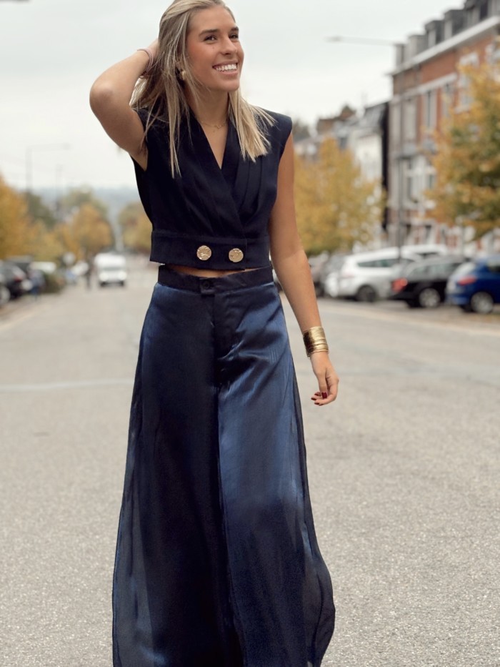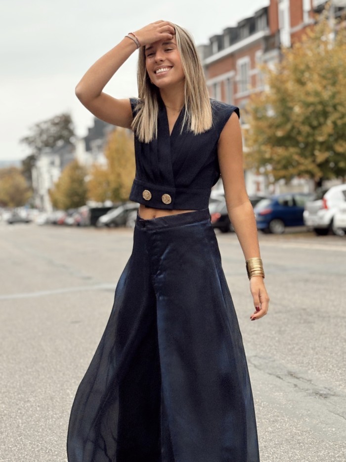 Blouse tailles S, M et L. Le mannequin mesure 1M72 et porte la taille S.