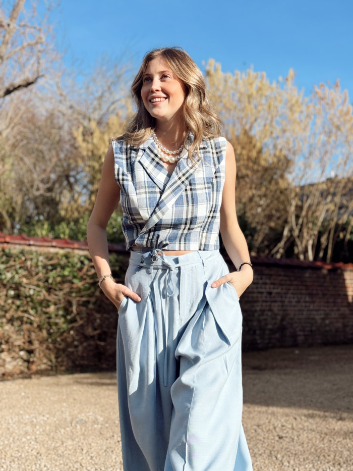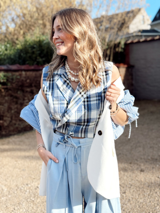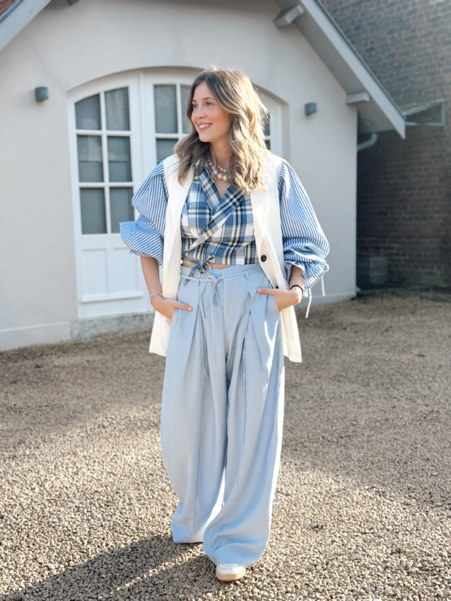 Cache-coeur taille S et M. Oriane porte la taille M car celle-ci à de la poitrine. Taille plutôt petit de poitrine.