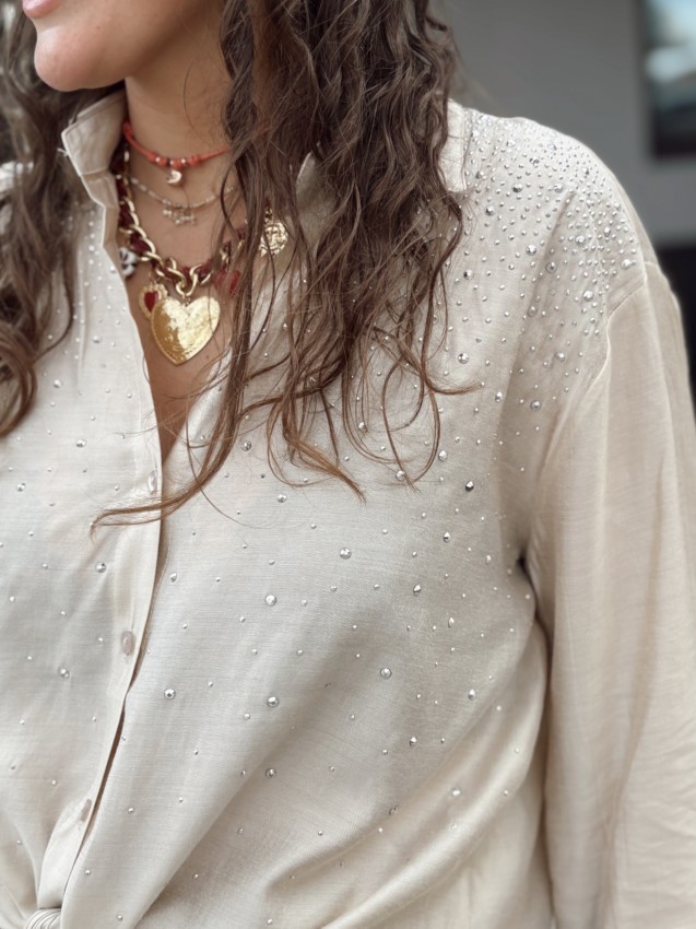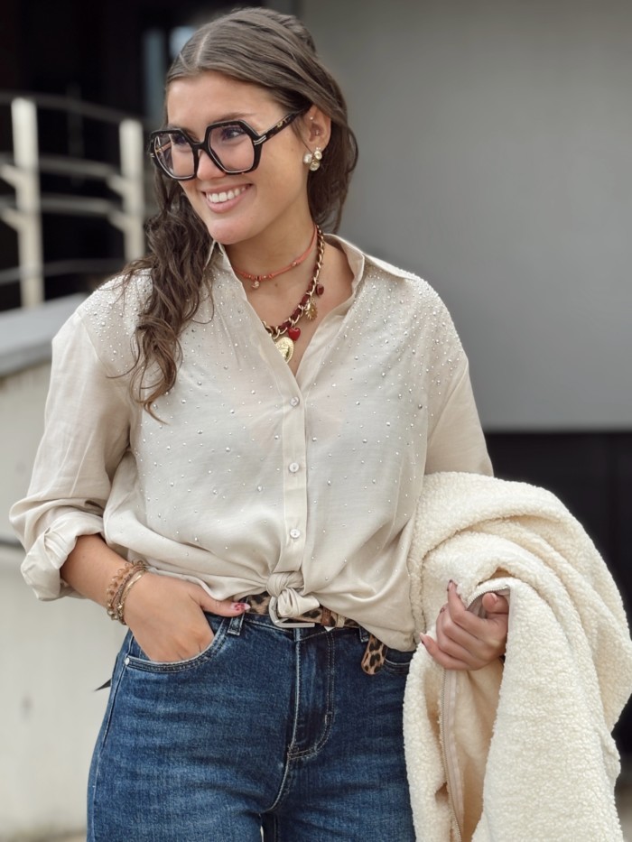 Chemise taille S, M et L. Le mannequin mesure 1M59 et porte la taille S.