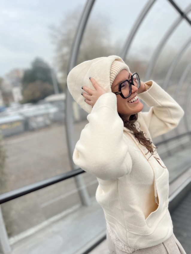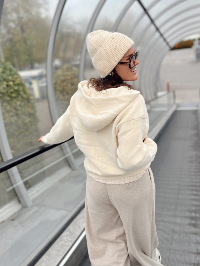 Gilet à capuche taille unique (convient du 36 au 42). Le mannequin mesure 1M59.