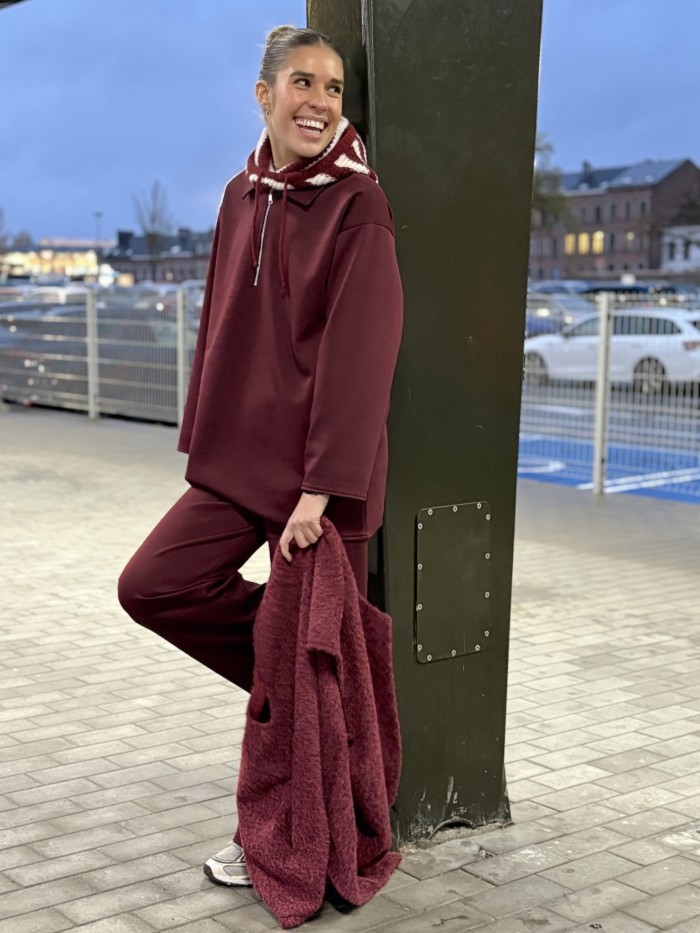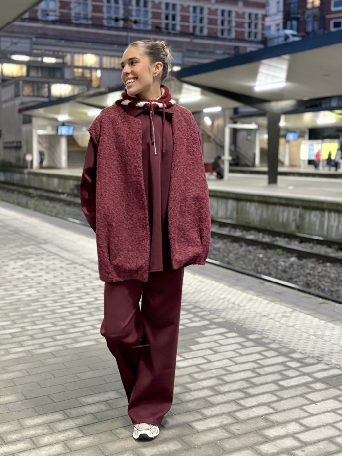 Gilet bordeaux taille unique (convient du 36 au 42). Le mannequin mesure 1M72.