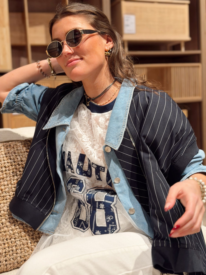Veste taille S uniquement (oversize). Laurane porte cette taille.