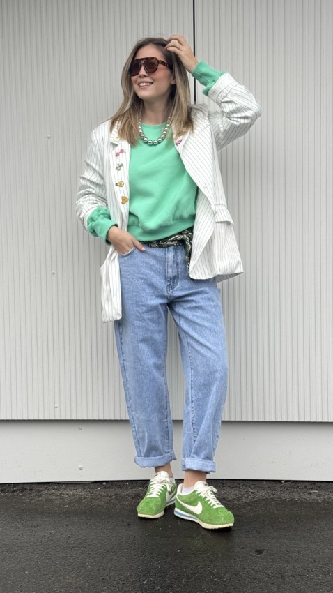 Jeans taille 36, 38 et 40. Oriane porte la taille 36 et mesure 1M63.