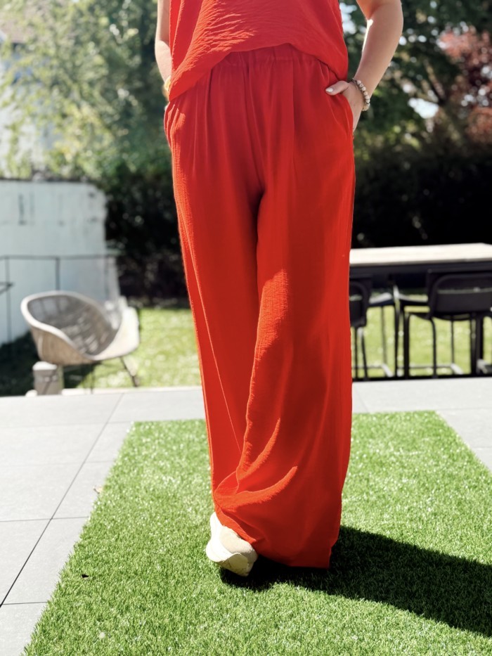Pantalon taille S, M et L. Laurane porte la taille S et mesure 1M63.