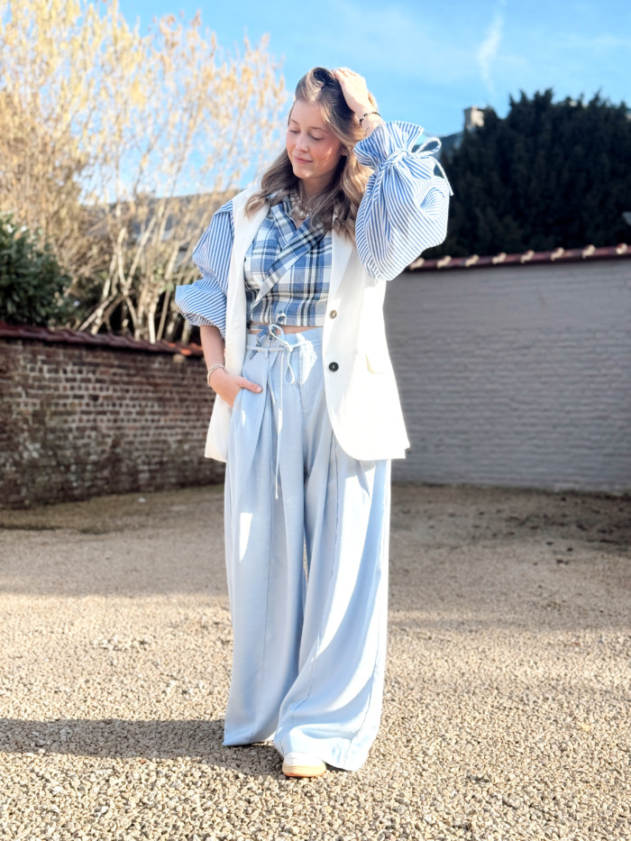 Pantalon taille S et M. Oriane mesure 1M63 et porte la taille S.