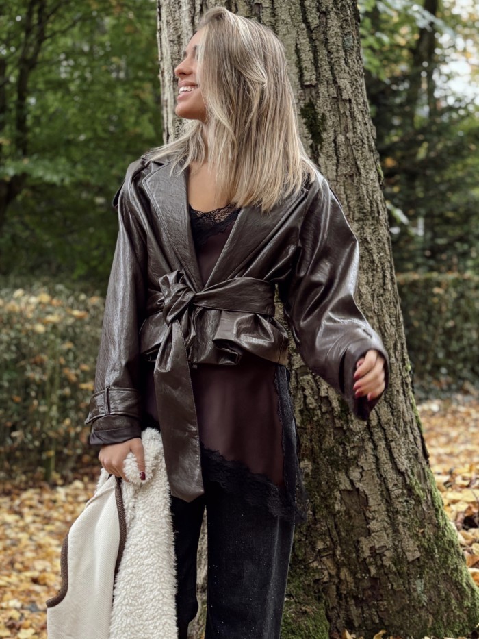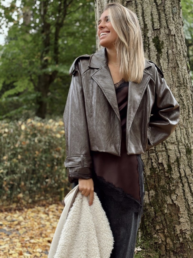 Veste simili cuir taille unique (convient du 36 au 42). Le mannequin mesure 1M72.