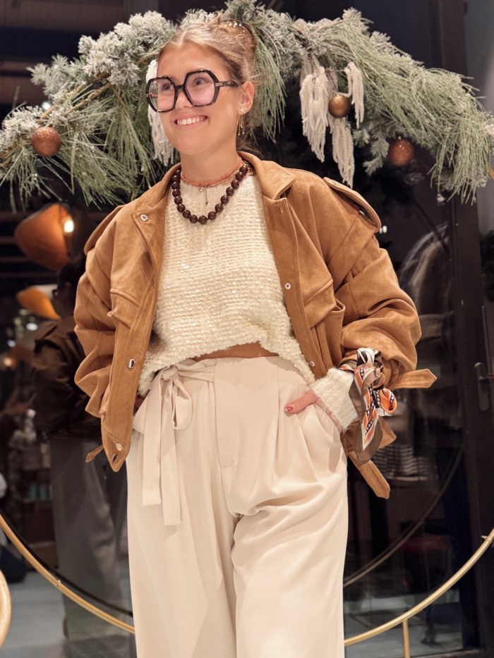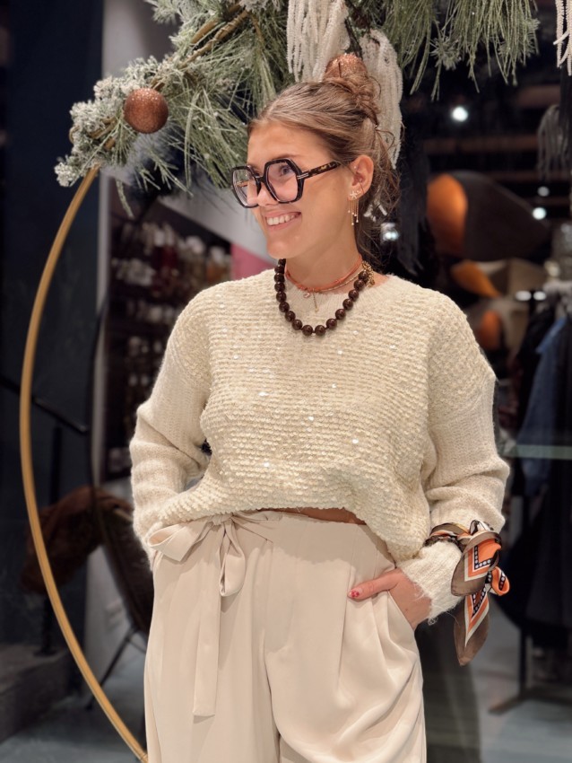 Pull taille unique (convient du 36 au 40). Le mannequin mesure 1M59.