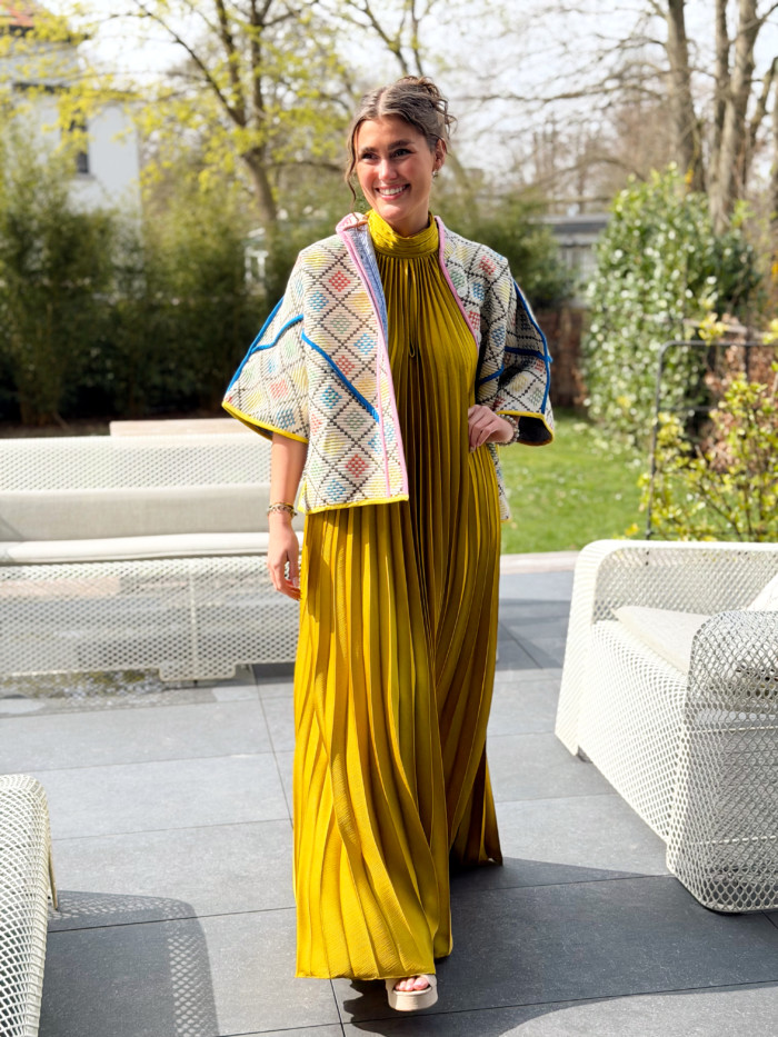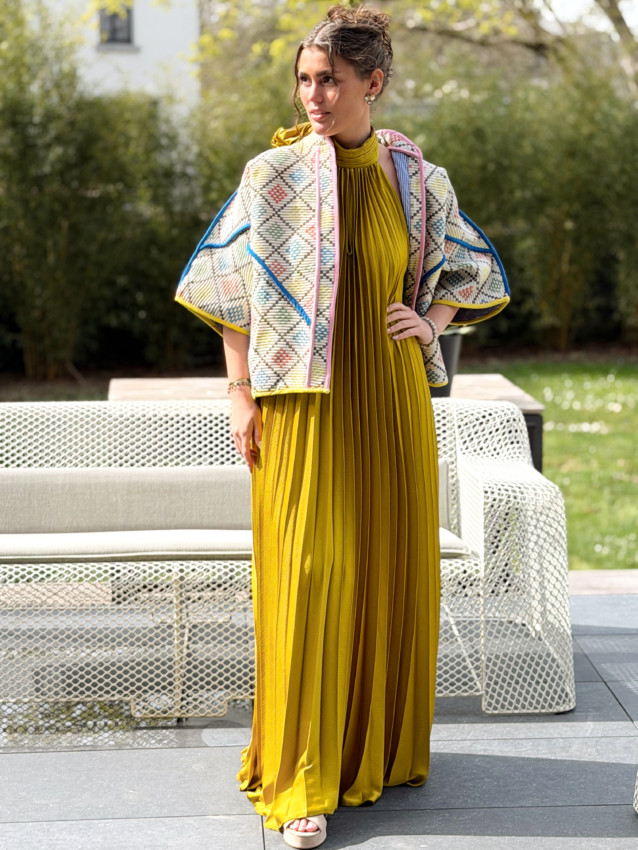 Robe taille S/M et M/L. Laurane porte la taille S/M et mesure 1M59.