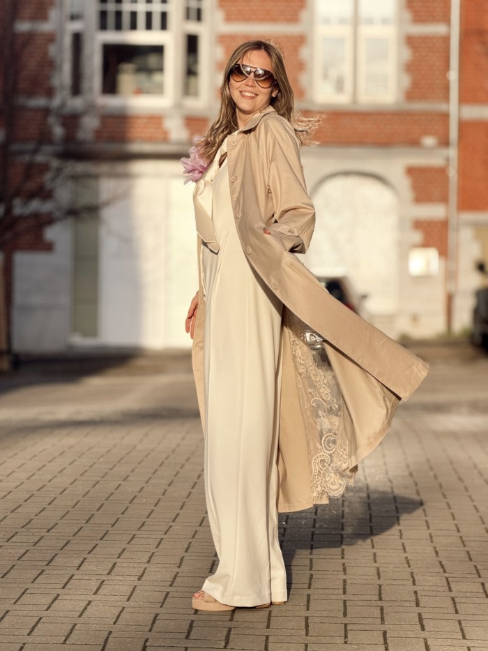 Salopette XS et S. Oriane porte la taille XS et mesure 1M63. Oriane a de longues jambes.