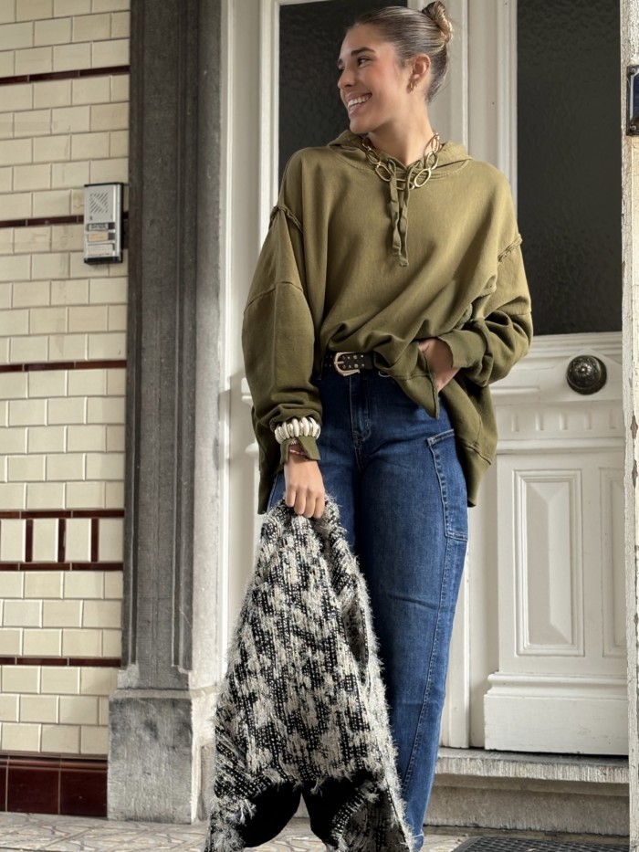 Sweat taille unique (convient du 36 au 42). Le mannequin mesure 1M74.