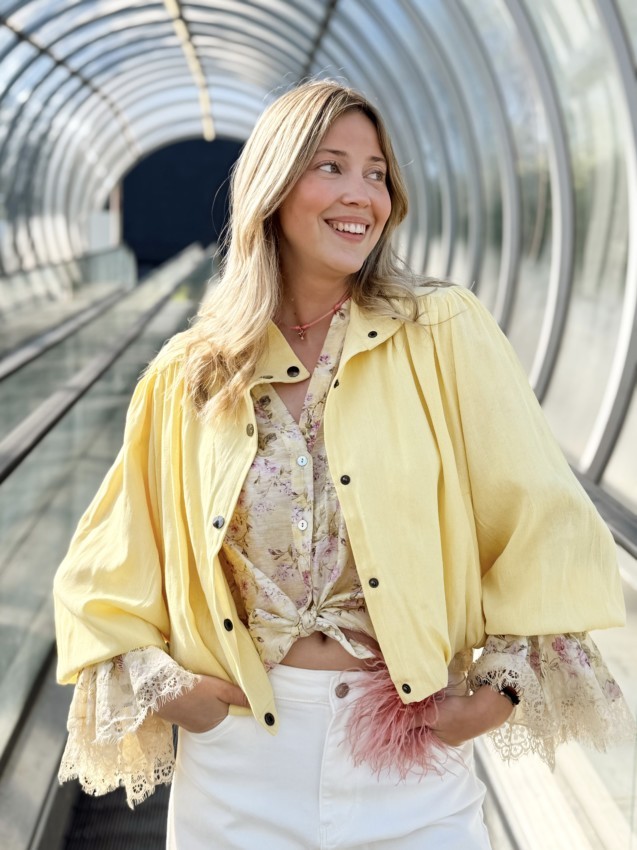 Blouse/Veste taille S et M. Oriane porte la taille M.