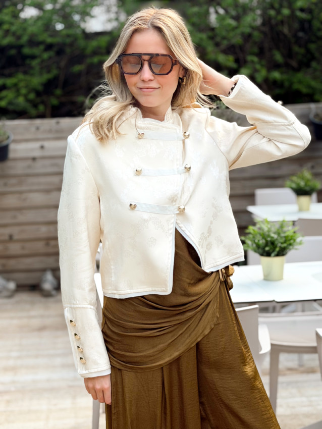 Veste coup de cœur taille S et M. Oriane porte la taille S.
