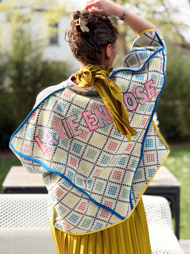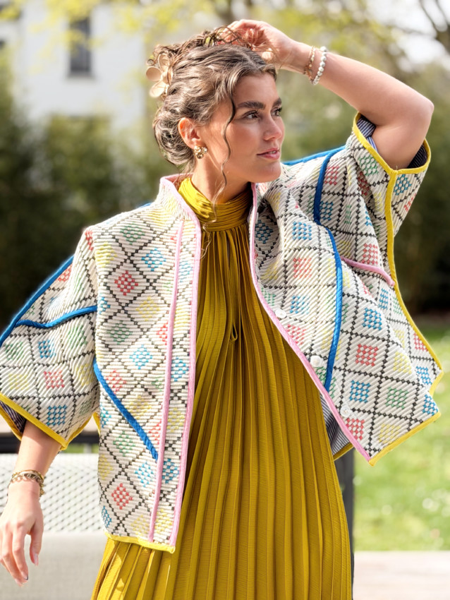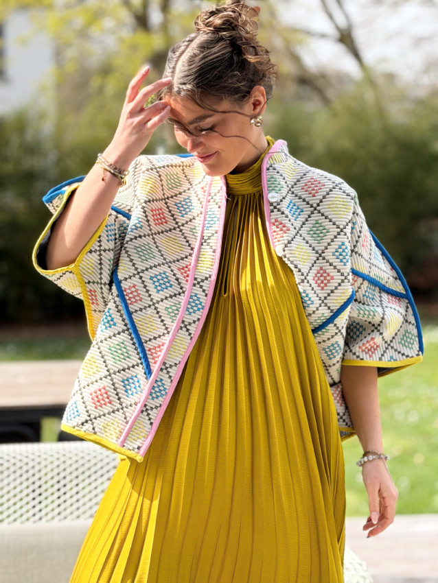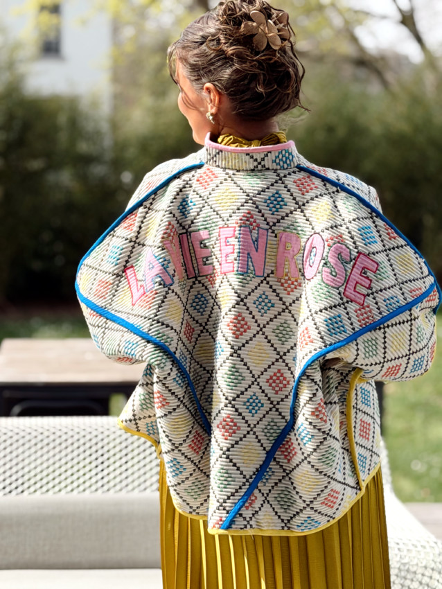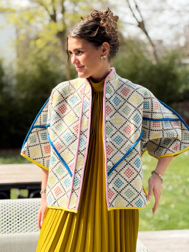 Veste taille unique (convient du 36 au 42). Oriane mesure 1M59.